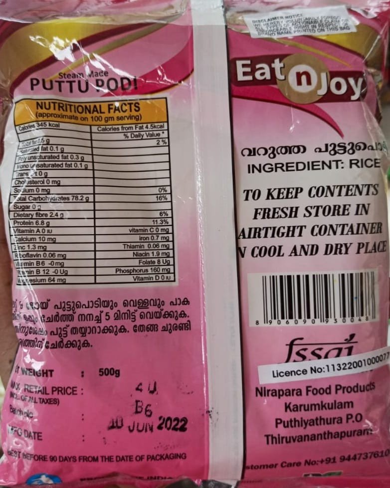 Eat N Joy Puttu Podi is famed for its pure white colour, even feel and smoothness. Appam / Idiyappam podi as the name suggests is rice powder that can be used to create delicious Appams and Idiyappam. Appam and Idiyappam are South Indian speciality dishes. You can now bring this yummy Kerala cuisine to your kitchen. A common breakfast in Kerala, Eat N Joy makes preparing these dishes easy and convenient. So go ahead and buy Eat N Joy Idiyappam Podi / Rice Atta online today.
