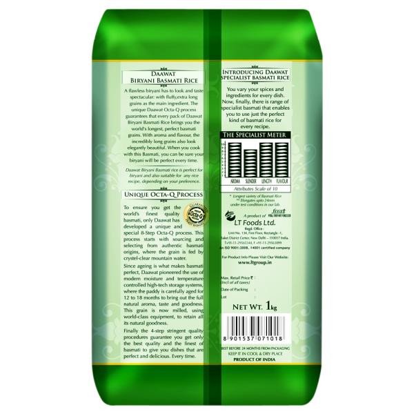 Basmati Rice has been an integral part of different rice recipes in every Indian household. This biryani rice is processed under the supervision of experts. Its taste, aroma, long grain, and pristine white lustre let you make every meal special. Its flavorful rich taste will earn you lots of appreciation from your visitors. Buy Daawat Biryani Basmati Rice online now!