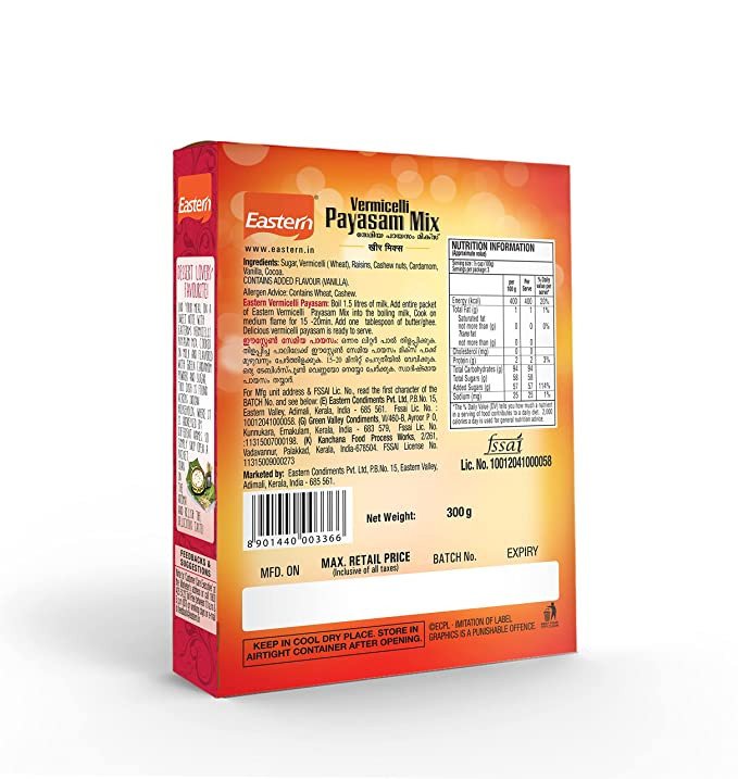 Have guests coming home but don't know what to make for dessert? Introducinge Eastern Vermicelli Payasam Mix - an Instant dessert mix that makes your life easier and tastier. The finest ingredients have been used to prepare this sweet dish. So go ahead, buy Eastern Vermicelli Payasam Mix online today and impress your guests.