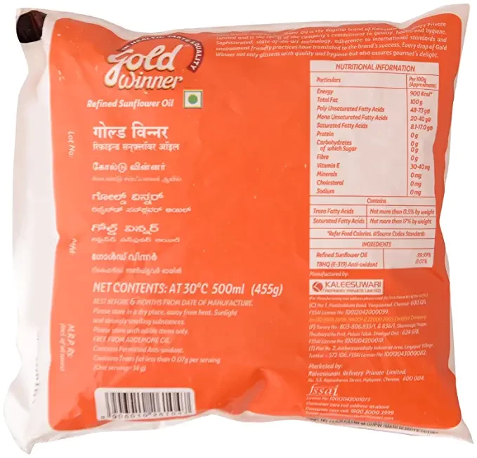 Gold winner refined sunflower oil (கோல்டு வின்னர் – ரீபைண்ட் சன்பிளவர் ஆயில்)-500ml